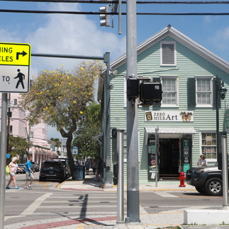 On the corner of Whitehead St and Fleming St., it is the end point if you are driving south or start point to US Route 1 if you plan to go north with a mile marker that says zero.
